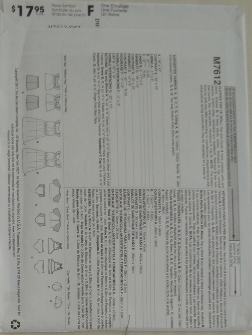 Mccalls 7612 18 Doll Clothes Top Shorts Dresses Swimsuit And Cap Ebay